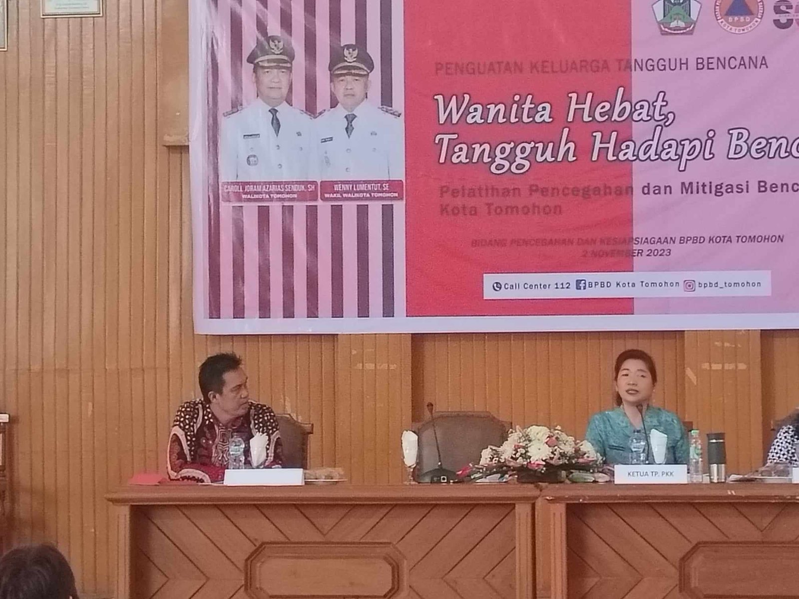 “Bagaimana perempuan di Kota Tomohon dilatih supaya dapat mengambil bagian baik pencegahan maupun saat bencana terjadi,” ujar istri Wali Kota Caroll J. A. Senduk SH itu.