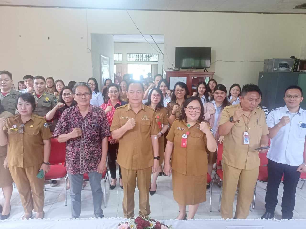 TOMOHON, MANADONEWS.CO.ID – Wali Kota Tomohon Caroll J A Senduk SH mengadiri Kegiatan Koordinasi dan Sinkronisasi perumusan kebijakan pelaksanaan Pengarusutamaan Gender (PUG), bertempat di Kantor DP3AD Kota Tomohon, Selasa (05/12/2023).