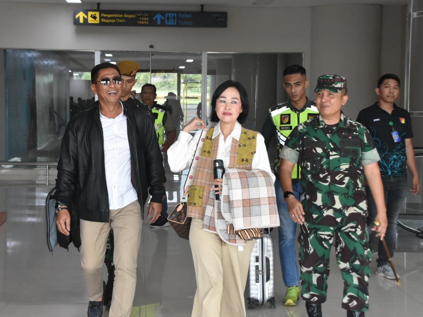 MANADO,MANADONEWS.CO.IDKomandan Kodim (Dandim) 1309/Manado Kolonel Inf Himawan Teddy Laksono menyambut kedatangan Kasdam XIII/Merdeka yang baru Brigjen TNI Yustinus Nono Yulianto bersama Ibu di Bandara Internasional Samratulangi Kelurahan Lapangan Kecamatan Mapanget, Kota Manado, Rabu (6/12/2023).
