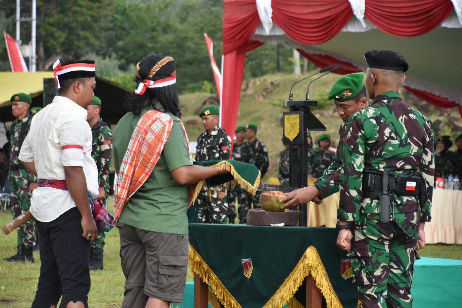 Pada upacara yang mengusung tema “Infanteri yang Profesional, Modern dan Dicintai Rakyat” tersebut, Kasdam XIII/Merdeka melakukan tradisi minum air dan membelah buah kelapa muda sebagai simbol perjuangan diiringi dengan tembakan yang dilakukan oleh pasukan tradisional atau pasukan Infanteri tempo dulu yang menggunakan pakaian dan persenjataan serba sederhana serta penandatanganan naskah serah terima simbol Yudha Wastu Pramuka Jaya.