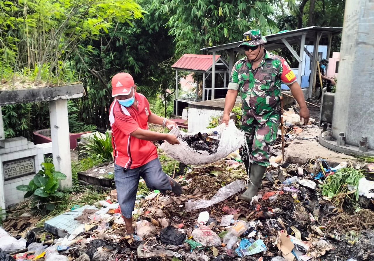 Berkenaan hal tersebut, Danramil 1309-04/PTM Kapten Chb Albert Lengkoan berkolaborasi dengan Pemerintah Kecamatan Pineleng melakukan aksi bersih-bersih.