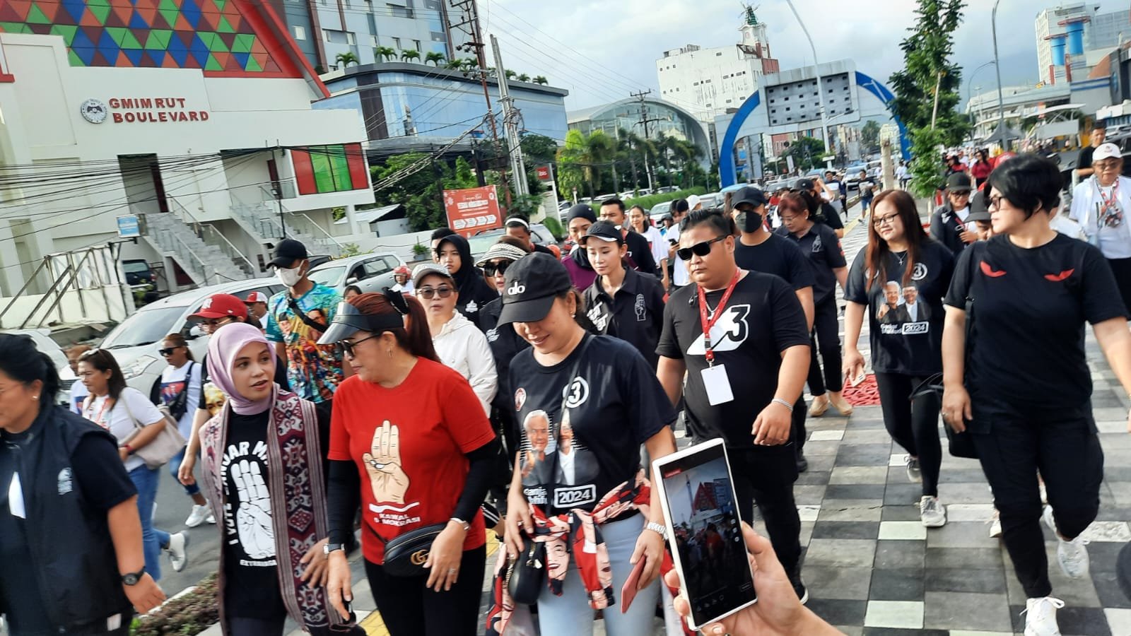 MANADO, MANADONEWS.CO.ID — Calon Anggota DPRD Kab. Minahasa Natalia Yuliana Rilli Rompas mengikuti Senam Ceria bersama Ibu Siti Atikoh Ganjar Pranowo yang turut didampingi Ibu Rita Tamuntuan di Kawasan Megamas Manado, Rabu (15/01-2024).