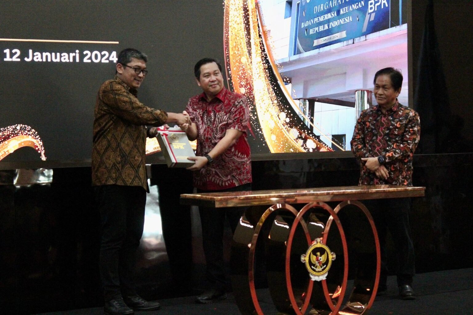 Sulawesi Utara (Sulut) Steven O.E. Kandouw menyerahkan Laporan Hasil Pemeriksaan (LHP) Semester II Tahun 2023, terkait Efektivitas Upaya Pemerintah Daerah (Pemda) dalam penyelengaraan Kawasan Ekonomi Khusus Industri Bitung (KEK Industri Bitung), Jumat (12/1/2024).