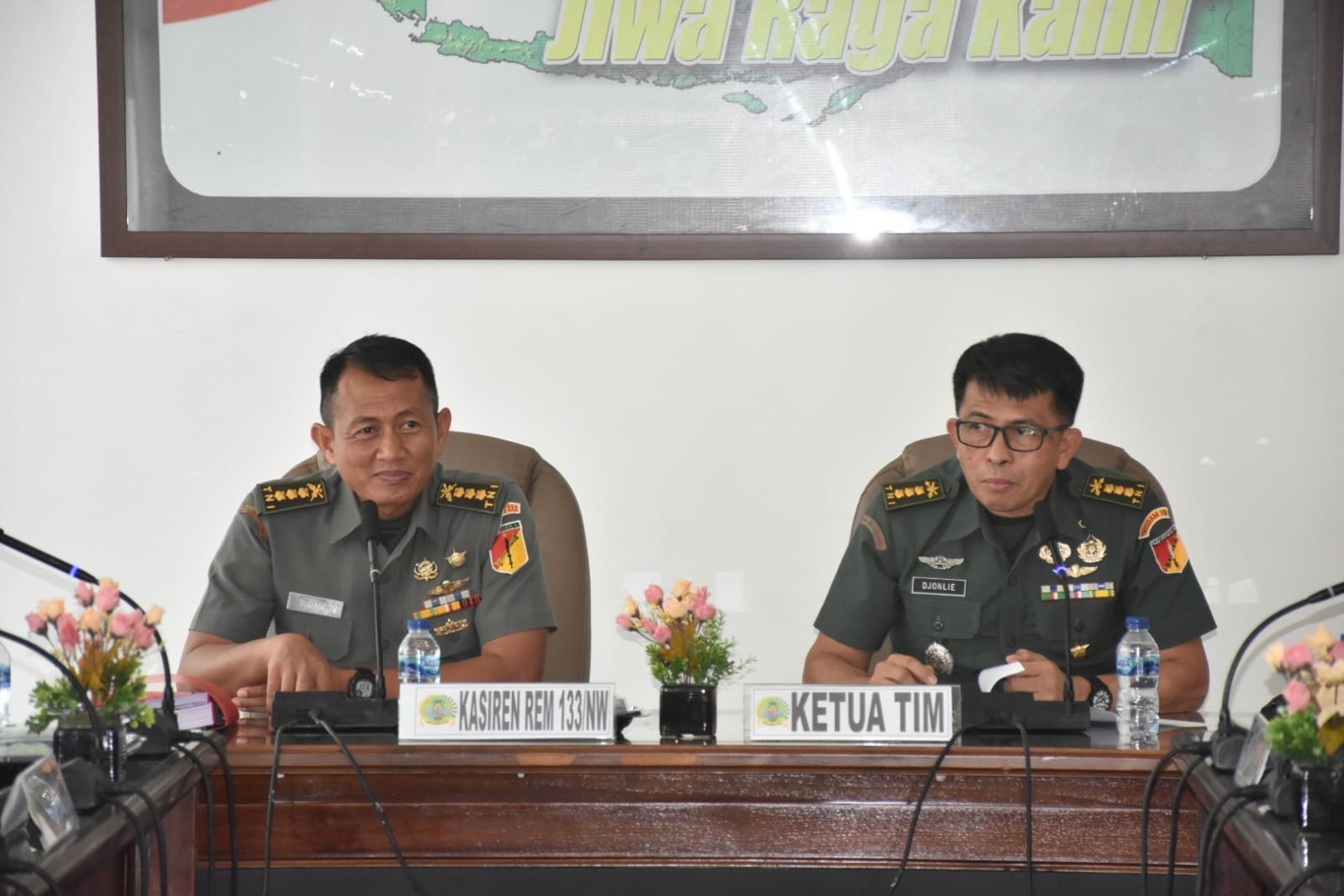 Kedatangan tim Verifikasi yang dipimpin oleh Kolonel Arh Djonlie Kaligis bersama rombongan disambut dan diterima langsung oleh Kasiren Korem 133/Nani Wartabone Kolonel Kav Sugianto mewakili Danrem 133/Nani Wartabone Brigjen TNI Totok Sulistyono bersama para Kasi Kasrem 133/Nani Wartabone.