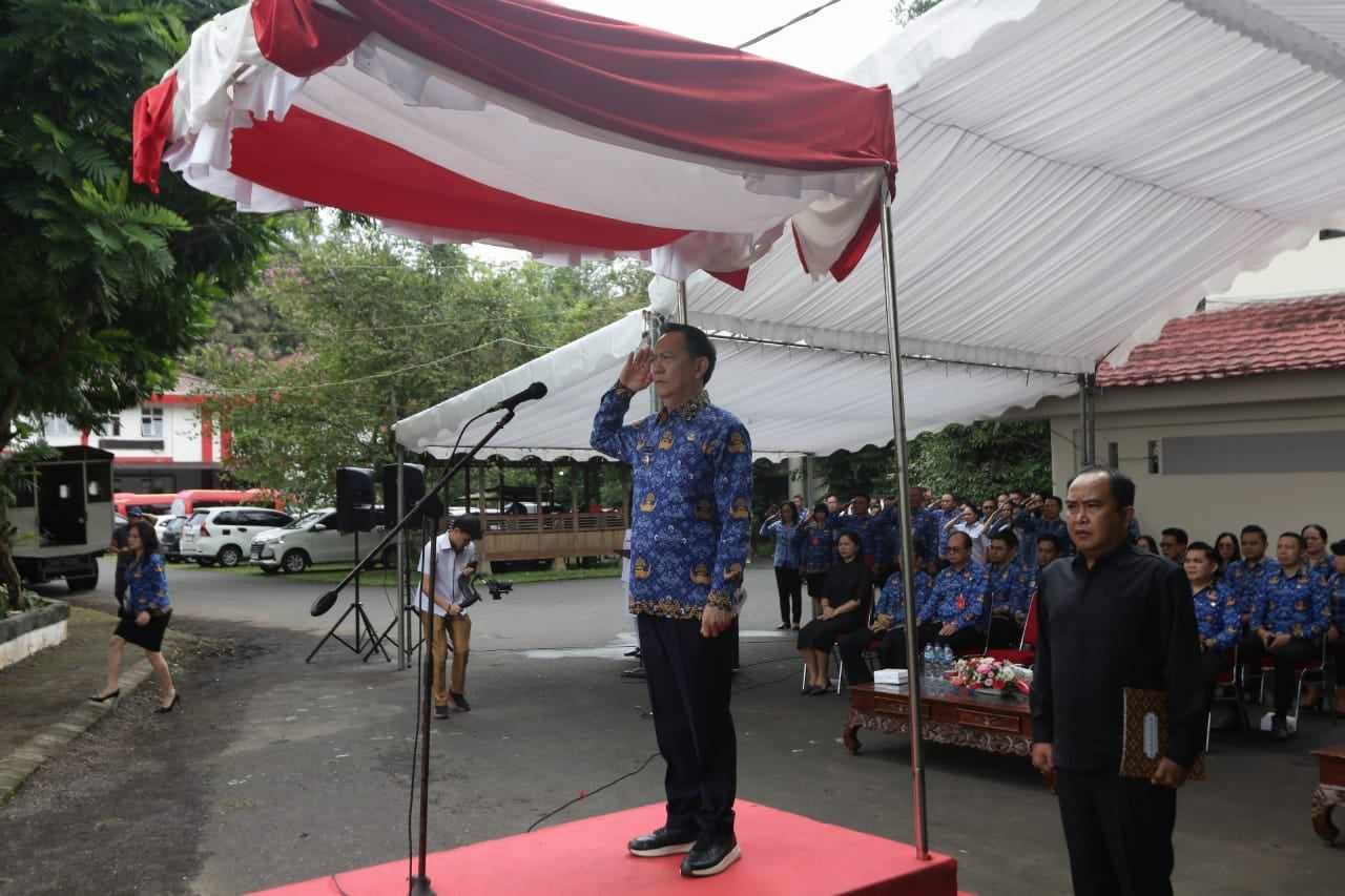 Pada kesempatan ini SWali Kota membacakan sambutan Kepala Badan Pembinaan Ideologi Pancasila Republik Indonesia Yudian Wahyudi.