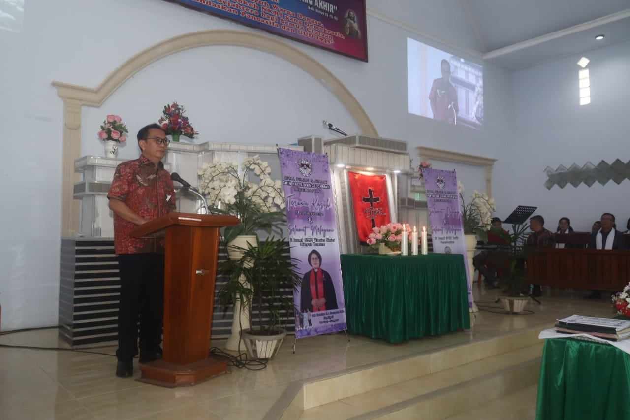 “Puji Syukur hari ini kita semua boleh menghadiri ibadah sekaligus pelantikan dan serah terima Ketua BPMJ GMIM Nafiri Pangolombian wilayah Tomohon empat dari Pdt Christine D J Sampow MTh kepada Pdt Frolly Tulung STh. Secara pribadi dan Jajaran Pemerintah Kota Tomohon menyampaikan terima kasih yang mendalam bagi ibu Pdt Christine D J Sampow MTh yang boleh melayani di jemaat GMIM Nafiri Pangolombian selama kurang lebih 4 tahun,” ujar Wali Kota mengawali sambutannya.