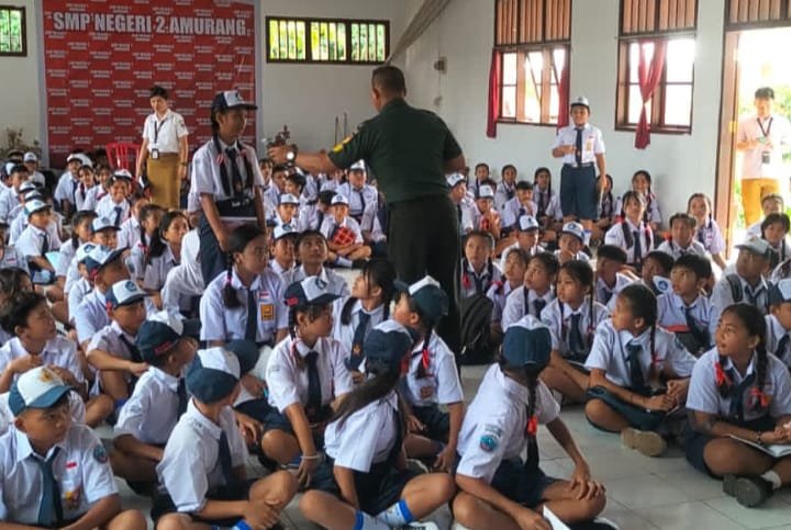 MINSEL,MANADONEWS.CO.ID– Bintara Tinggi Tata Usaha Urusan Dalam (Bati Tuud) Koramil 1302-04/Amurang Serma Janny Weydekamp kenalkan wawasan kebangsaan dan bela negara kepada siswa-siswi SMP Negeri 2 Amurang melalui kegiatan Gerakan Army Go To School, Senin (5/7/2024) di Kelurahan Buyungon, Kecamatan Amurang, Kabupaten Minahasa Selatan (Minsel), Provinsi Sulawesi Utara.