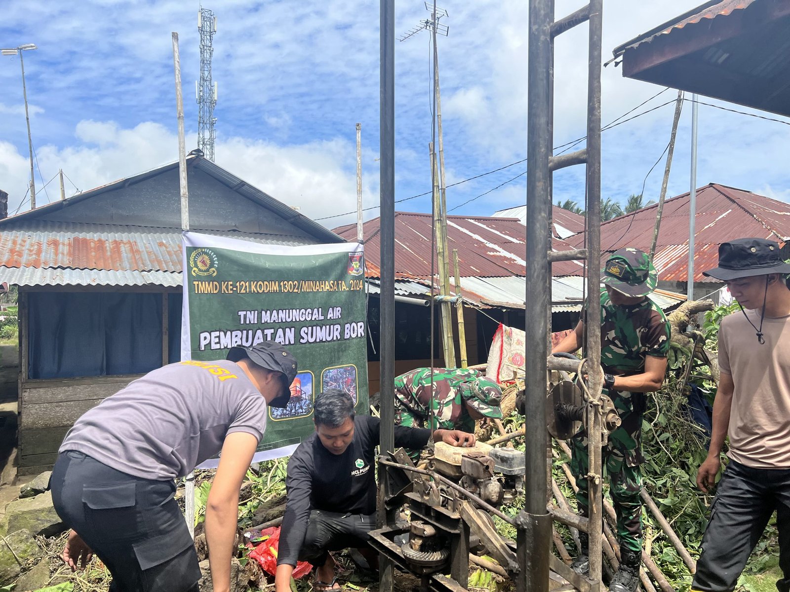 MINAHASA,MANADONEWS.CO.ID– Dalam rangka membantu kesulitan warga untuk mendapatkan air bersih, Satuan Tugas (Satgas) TNI Manunggal Membangun Desa (TMMD) ke-121 Kodim 1302/Minahasa hadir mengalirkan kebutuhan air bersih sebagai solusi kesulitan akses masyarakat terhadap air bersih, dengan melaksanakan pembangunan sumur bor sebanyak 3 titik di Desa Paslaten Kecamatan Kakas, Kabupaten Minahasa, Sulawesi Utara.