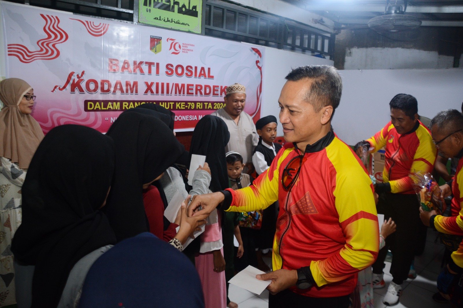 Pangdam XIII/Merdeka Mayjen TNI Candra Wijaya mengatakan, kegiatan anjangsana ini sebagai rangkaian dalam menyambut peringatan Hari Ulang Tahun (HUT) ke-79 Kemerdekaan Republik Indonesia dan juga untuk meningkatkan kepedulian sosial Kodam XIII/Merdeka sekaligus bersilaturahmi dan mengenal lebih dekat kehidupan anak-anak yatim piatu.