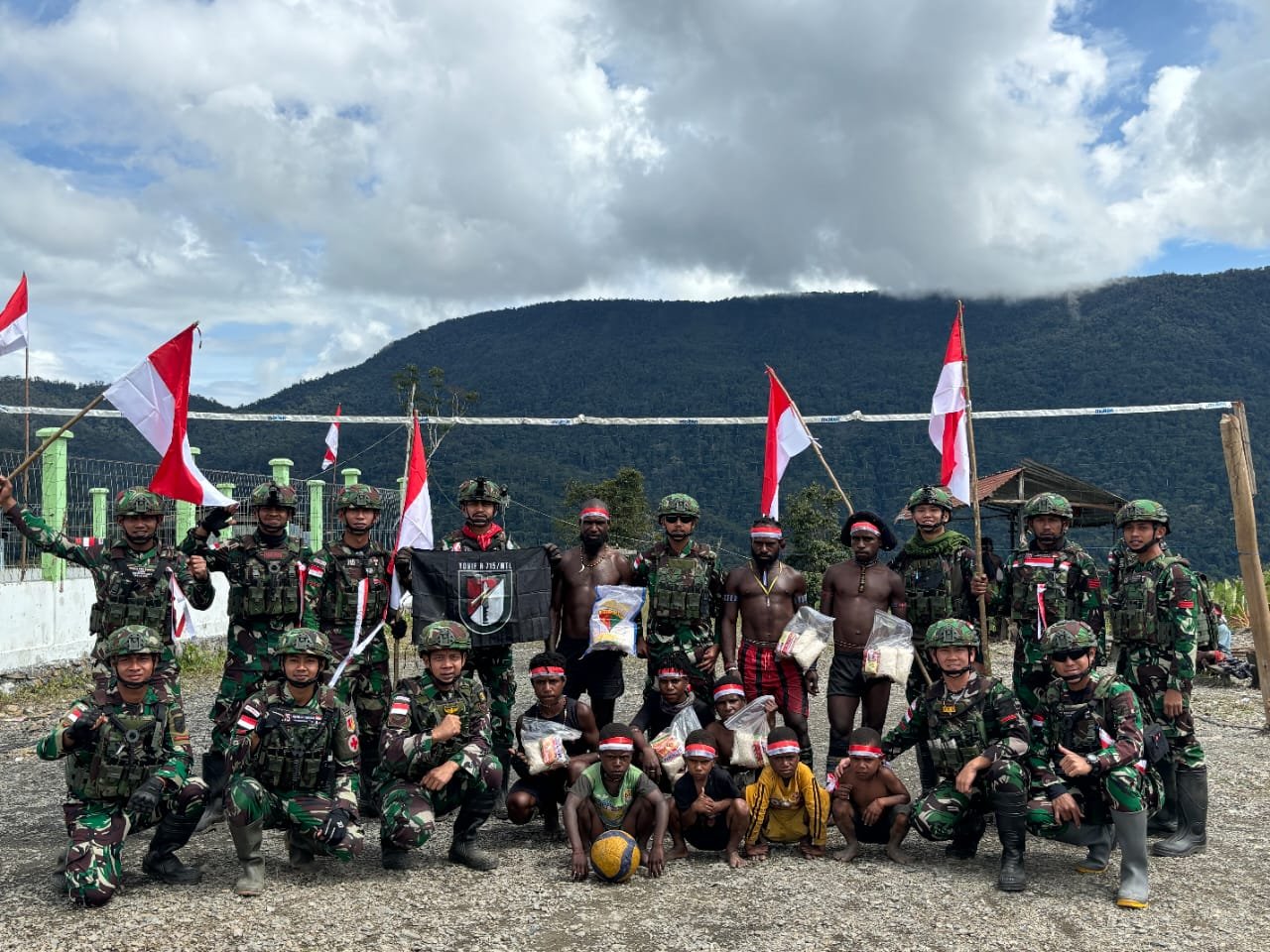 PAPUA,MANADONEWS.CO.ID– Dalam rangka memperingati Hari Ulang Tahun (HUT) ke-79 kemerdekaan Republik Indonesia, Satgas Pamtas Kewilayahan Yonif 715/Motuliato menggelar perlombaan bola Voli di lapangan Voli Pos Tirineri, Kabupaten Puncak Jaya, Papua, Minggu (18/8/2024).