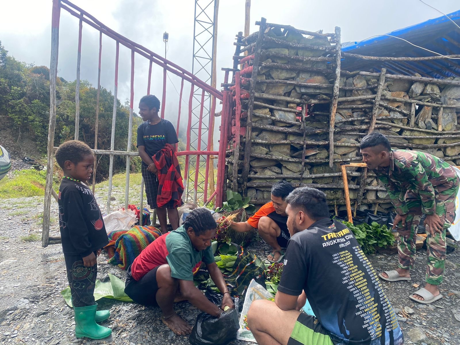 PAPUA,MANADONEWS.CO.ID- Dalam rangka membantu perekonomian warga khususnya mama Papua, Satuan Tugas Pengamanan Perbatasan (Satgas Pamtas) Kewilayahan Yonif 715/Motuliato tidak henti-hentinya menggencarkan kembali program borong hasil kebun masyarakat di Distrik Mulia Kabupaten Puncak Jaya, Rabu (4/9/2024).
