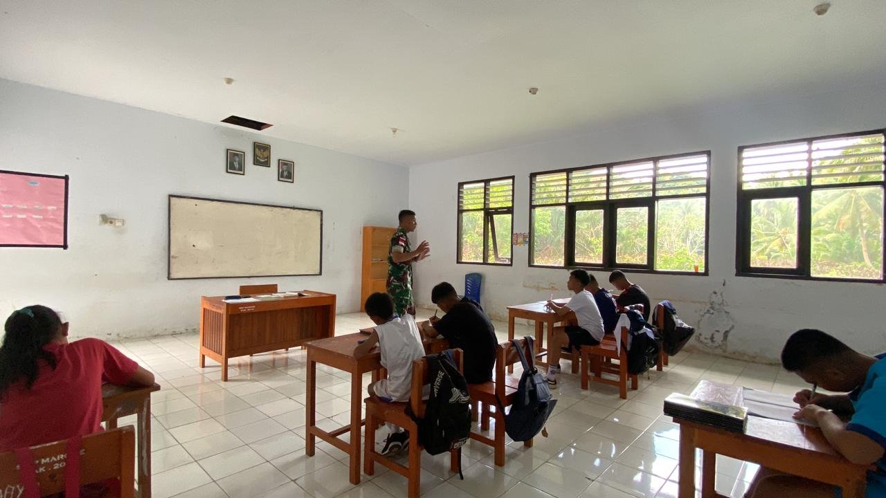 MARORE,MANADONEWS.CO.ID– Selain menjalankan tugas pokoknya mengamankan pulau terluar, sebagian personel Satgas Pamputer Kodam XIII/Merdeka melaksanakan kegiatan teritorial yaitu menjadi tenaga pendidik (Gadik) di SMP Negeri 3 Tabukan Utara yang ada di wilayah Pulau Marore, Selasa (10/9/2024).