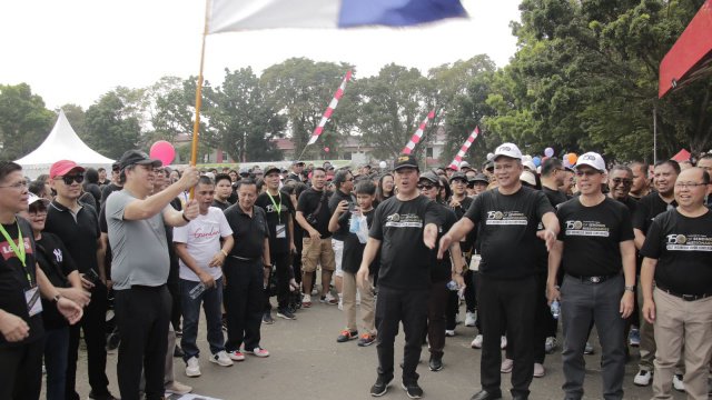 Melepas peserta jalan sehat di hadapan ribuan jemaat GMAHK, Wakil Gubernur Sulut, Steven Kandouw, ikut memberikan semangat.