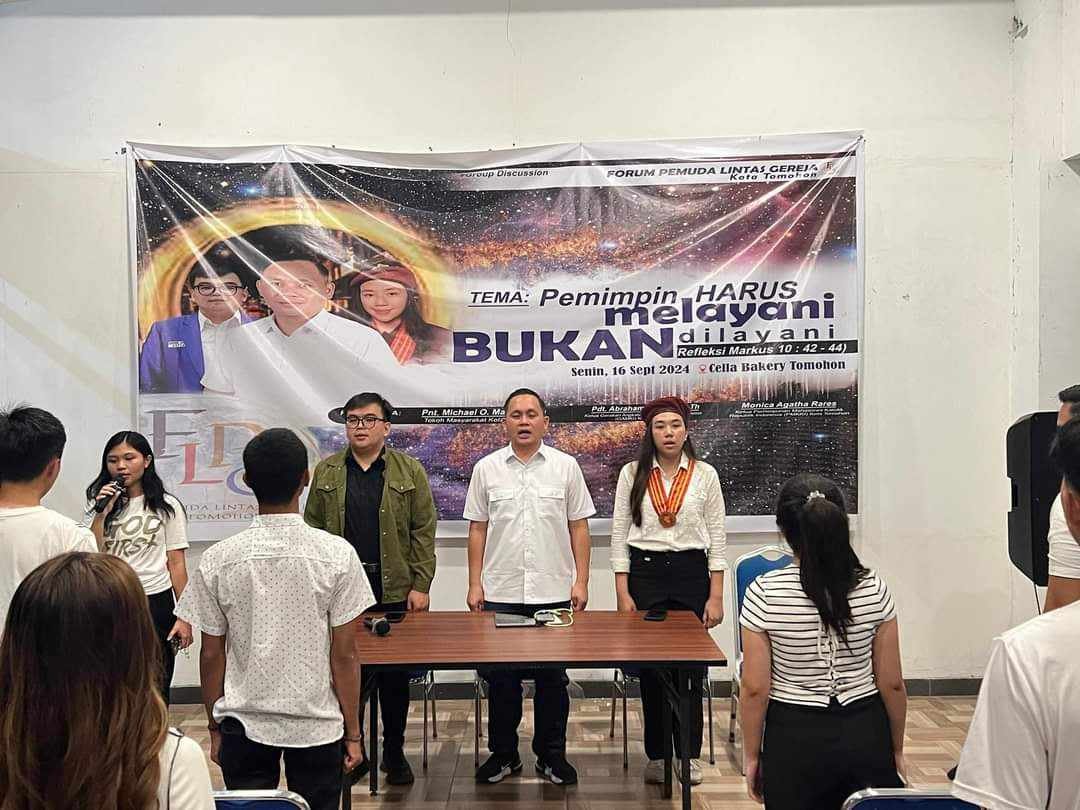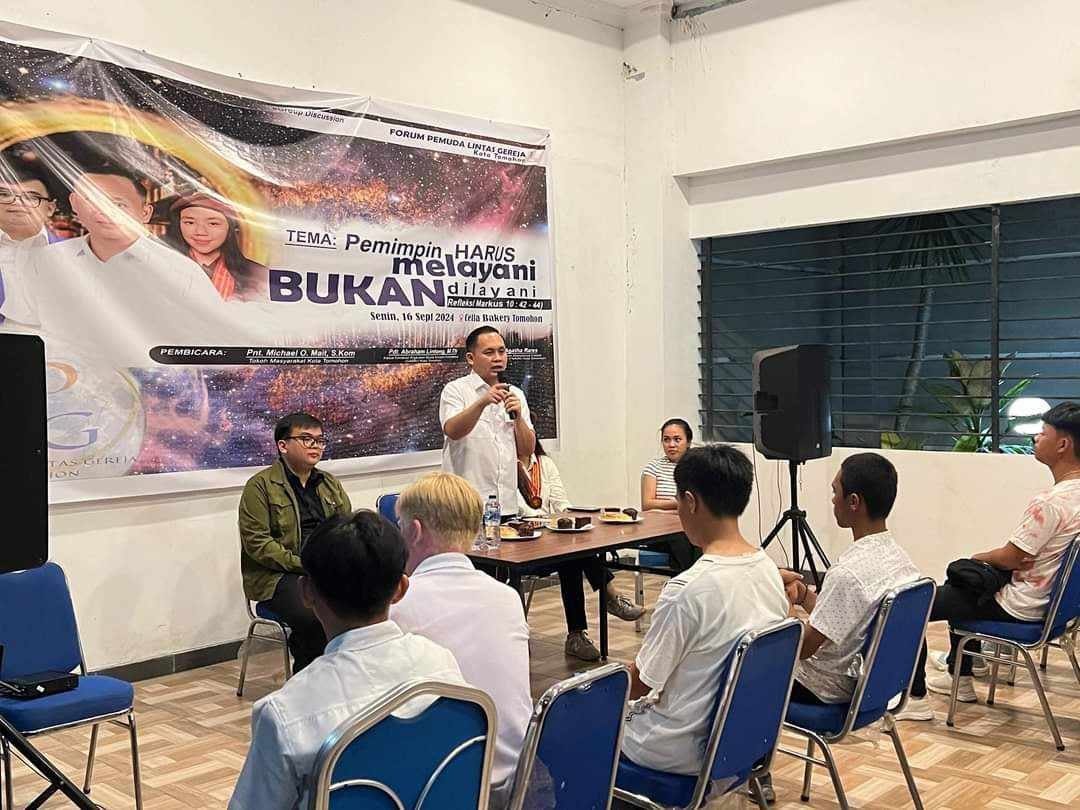 TOMOHON, MANADONEWS.CO.ID -Forum Pemuda Lintas Gereja (FPLG) Kota Tomohon melaksanakan Group Discussion di Cella Bakercy Tomohon dengan mengangkat Tema “Pemimpin Harus Melayani, Bukan Dilayani” (Refleksi Markus 10:42-44), Senin (26)09)2024).