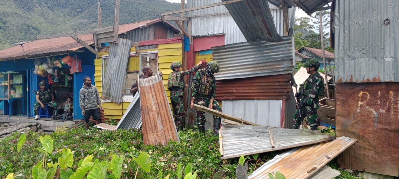 Seperti yang dilakukan oleh 8 personel Pos Pruleme Satgas Pamtas Kewilayahan Yonif 715/Motuliato yang dipimpin Danki Lettu Inf Asri melaksanakan bedah rumah tidak layak huni milik Bapak Dani Kogoya warga Pasar Lama, Kota Mulia, Kabupaten Puncak Jaya, Rabu (18/9/2024).