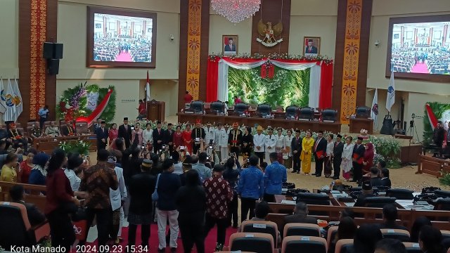 Pelantikan dilaksanakan usai rapat paripurna HUT ke-60 Provinsi Sulawesi Utara di ruangan rapat paripurna DPRD Sulut, Senin (23/9/2024).