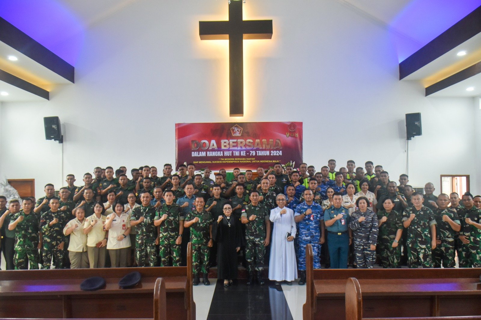 Doa bersama lintas agama ini merupakan ikhtiar batiniah untuk kelancaran dan kesuksesan HUT TNI pada Sabtu 5 Oktober 2024 nanti, yang dilaksanakan secara serentak oleh keluarga besar jajaran TNI baik TNI Angkatan Darat, Angkatan Laut, dan Angkatan Udara di wilayah Kodam XIII/Merdeka.
