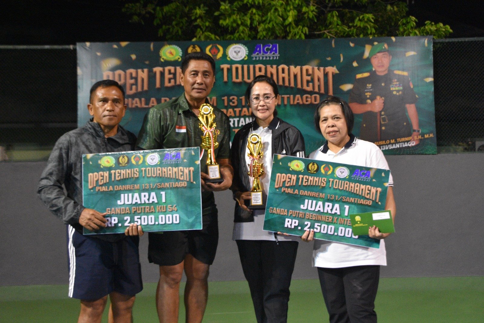 Adapun peserta sebagai pemenang tenis lapangan piala Danrem 131/Santiago tahun 2024 yakni: kelompok KU 54 Juara satu pak Yustinus Nono Yulianto dan pak Benyas, Juara dua pak Alex Telling dan Funny Tuju, Juara tiga bersama pak Martin SM Turnip, pak Marnex, pak Djond Hart dan pak Mouthy Assa.