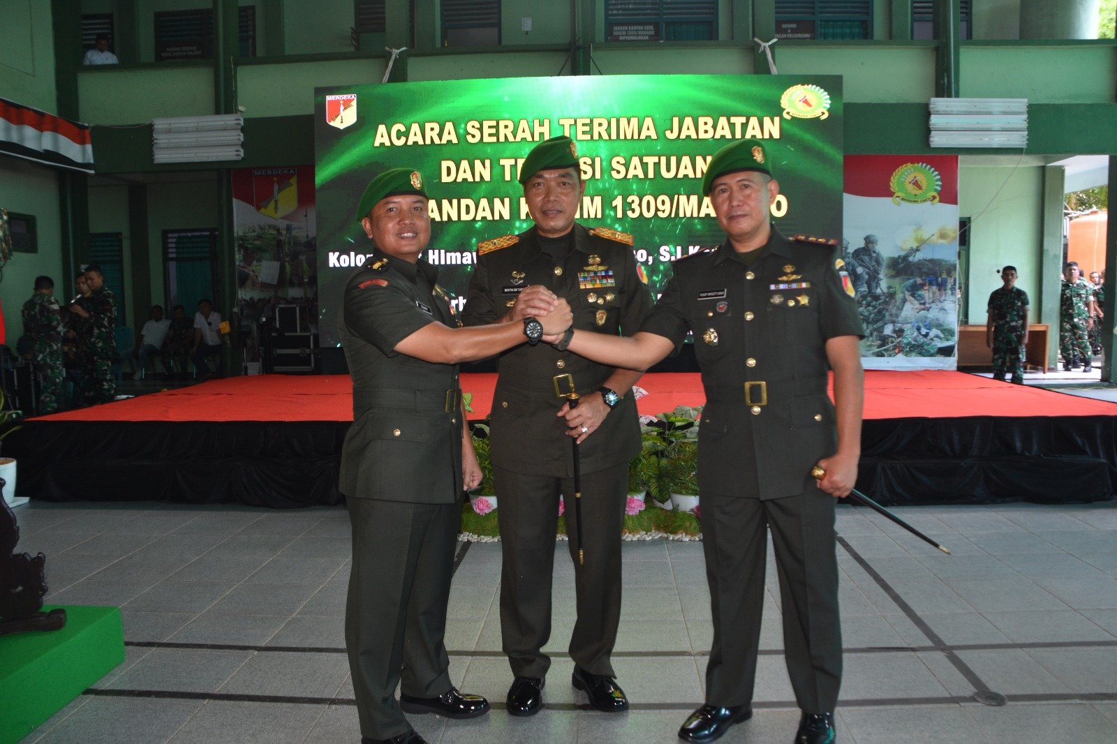 Prosesi upacara Sertijab Dandim 1309/Manado ditandai dengan penyerahan tanda jabatan dan tongkat Komando oleh Dandim lama kepada Danrem 131/Santiago dan penyerahan tanda jabatan dan tongkat Komando dari Danrem kepada pejabat baru Letkol Arh Yosip Brozti Dadi, kemudian penandatanganan Berita Acara Sertijab Dandim dan Ketua Persit Kartka Chandra Kirana Cabang XVII Dim 1309 Koorcabrem 131 PD XIII/Merdeka serta penandatanganan Pakta Integritas Dandim 1309/Manado.