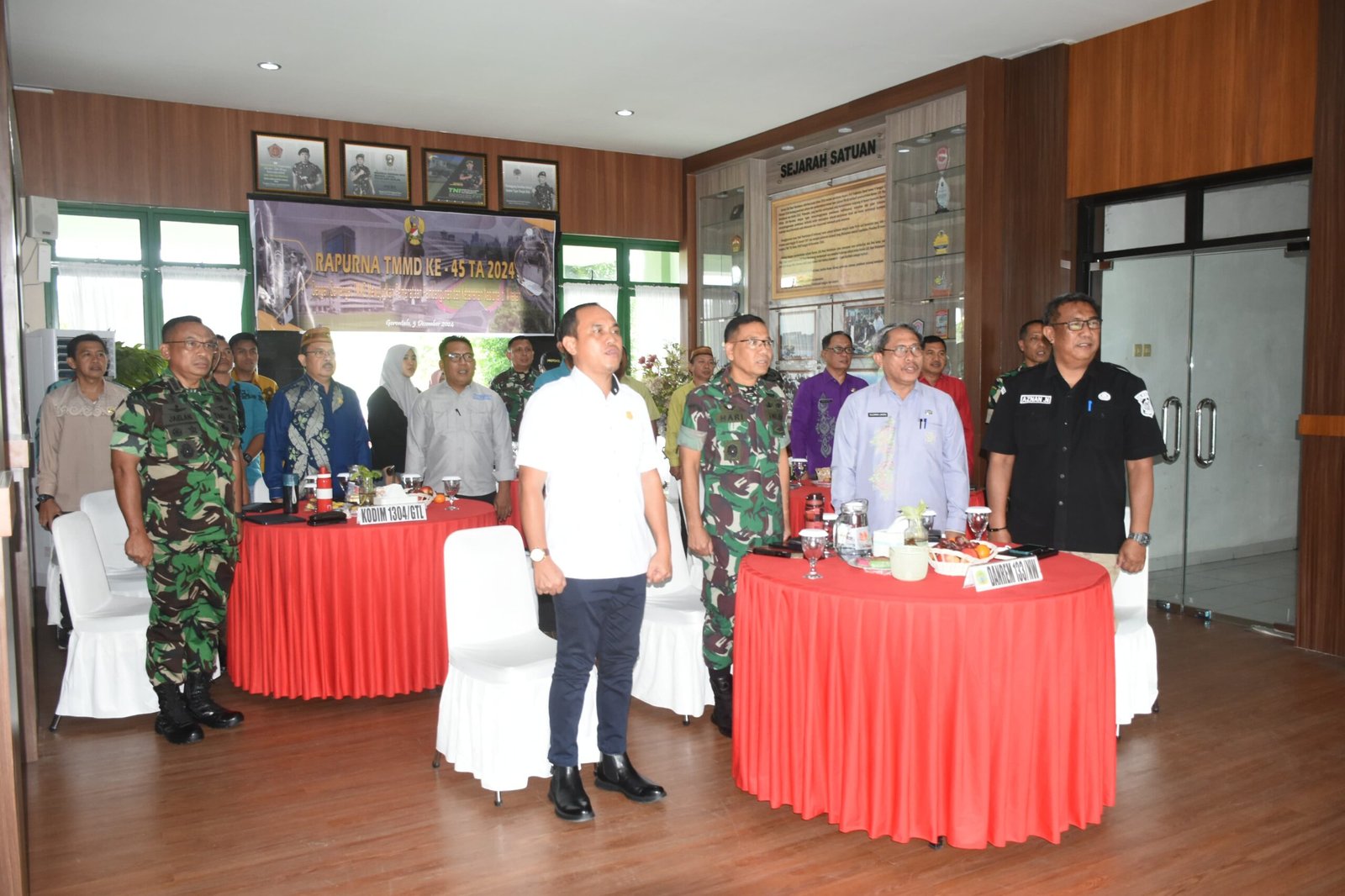 GORONTALO,MANADONEWS.CO.ID- Komandan Korem (Danrem) 133/Nani Wartabone Brigjen TNI Hari Pahlawantoro mengikuti rapat paripurna (Rapurna) TNI Manunggal Membangun Desa (TMMD) ke-45 TA. 2024, secara virtual yang dipimpin oleh Wakasad Letjen TNI Tandyo Budi Revita, bertempat di ruang Transit Makorem 133/Nani Wartabone Jl. Trans Sulawesi Desa Tridharma Kecamatan Pulubala, Kabupaten Gorontalo. Kamis (5/12/2024).