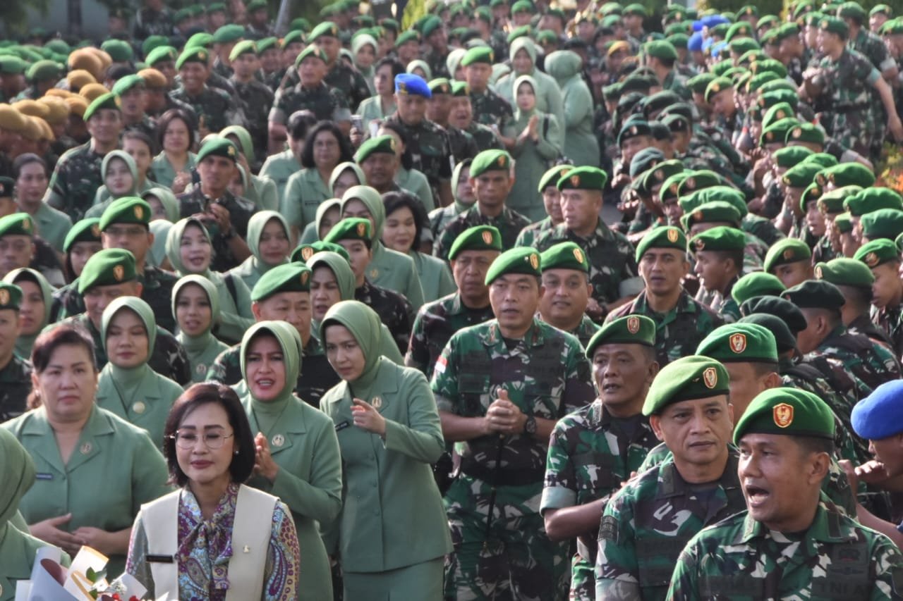 “Kepada seluruh Prajurit dan ASN JAYA SAKTI Kodam XIII/Merdeka, saya beserta keluarga ucapkan terima kasih dan rasa bangga atas dukungan dan kerja samanya selama saya menjabat sebagai Pangdam XIII/Merdeka, sehingga kehadiran Kodam XIII/Merdeka dapat dirasakan manfaatnya oleh seluruh masyarakat Sulawesi Utara, Sulawesi Tengah, dan Gorontalo. Untuk itu, teruslah maju dengan komitmen untuk melaksanakan setiap kegiatan dengan niat ibadah, berbuat yang terbaik, berani, tulus dan ikhlas,” pungkasnya.