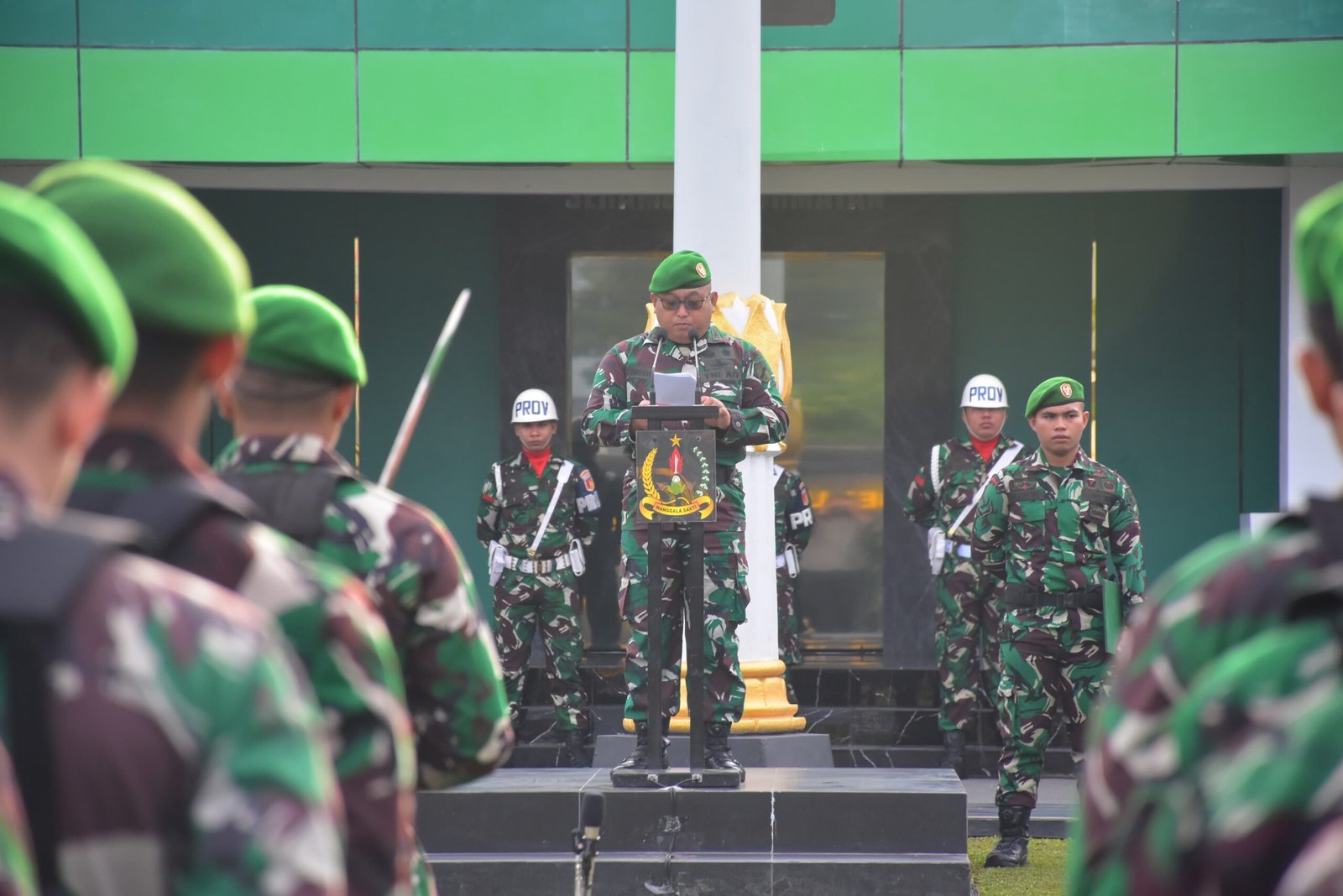 “Sebagai garda terdepan dalam menjaga kedaulatan negara, TNI harus selalu profesional, responsif, dan adaptif. Pegang teguh Sapta Marga, Sumpah Prajurit, dan 8 Wajib TNI agar tetap menjadi benteng pertahanan yang kokoh serta perekat keutuhan bangsa Indonesia,” lanjutnya.