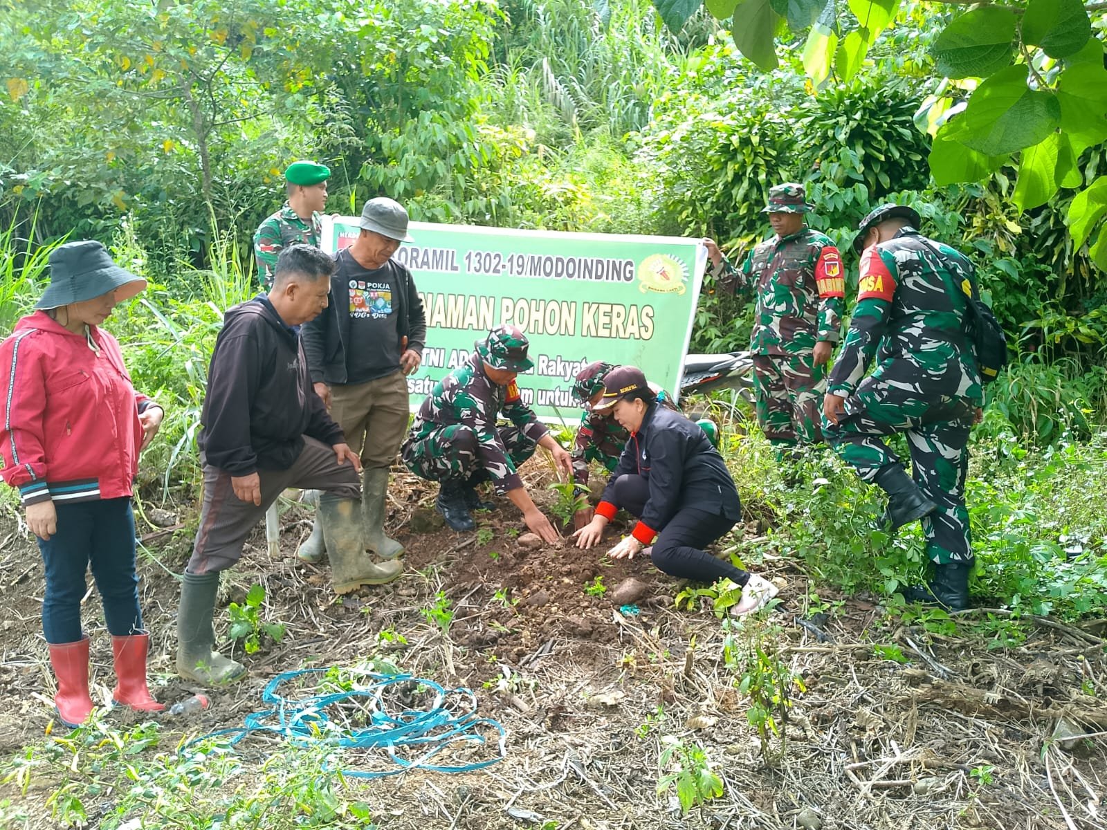 MINSEL,MANADONEWS.CO.ID- Komandan Koramil (Danramil) 1302-15/Tengah Letda Inf Oral Tatambihe menghadiri kegiatan penanaman pohon keras bertempat di perkebunan Lopana, Desa Boyong Atas, Kecamatan Tenga, Kabupaten Minahasa Selatan, Selasa (28/1/2025).