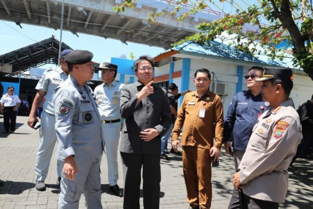 Walikota Manado, Andrei Angouw, turut mendampingi Menteri Dudy ketika mengunjungi Pelabuhan Manado, Senin (21/7/2025).
