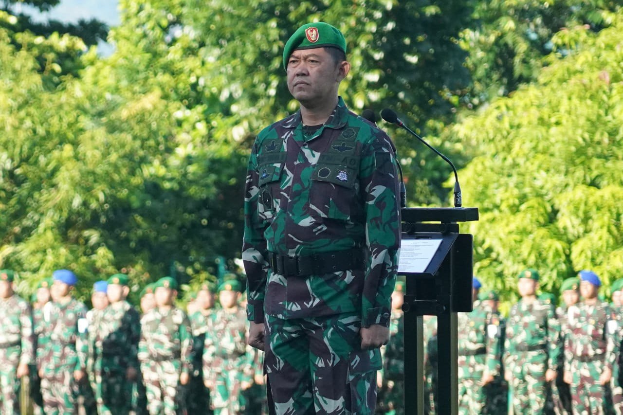 MANADO,MANADONEWS.CO.ID- Asisten Operasi (Asops) Kasdam XIII/Merdeka Kolonel Inf Elvino Yudha Kurniawan menjadi inspektur upacara pada upacara bendera minggu keempat bulan Juli di lapangan upacara Makodam XIII/Merdeka, Senin (28/7/2025).