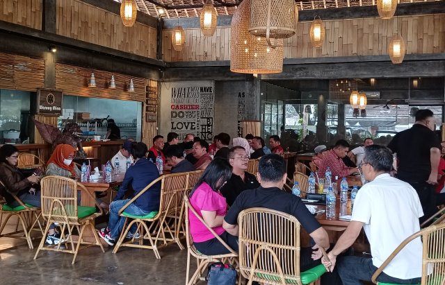 Terpantau, kader PDI-P asal Sulut terdiri dari pengurus DPD, DPC, serta para kepala daerah berkumpul di salah satu restoran di Sanur, Kamis (31/7/2025) sore.