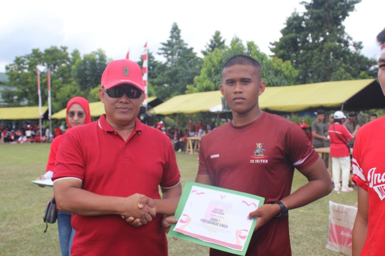 MANADO,MANADONEWS.CO.ID- Batalyon Zeni Tempur (Yonzipur) 19/Yudha Karya Nyata (YKN) dibawah kepemimpinan Danyonzipur 19/YKN Letkol Czi Wiratama Suryono, S.T., M.Si., M.S. berhasil dominasi dan menjadi juara umum pada ajang perlombaan antar satuan jajaran Kodam XIII/Merdeka dalam rangka memperingati Hari Ulang Tahun (HUT) ke-80 Kemerdekaan Republik Indonesia, yang berlangsung di Markas Kodam XIII/Merdeka, Kota Manado, Sulawesi Utara, Senin (18/8/2025).