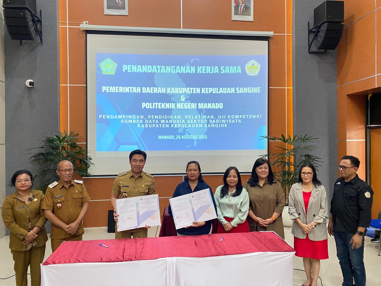 MANADO, MANADONEWS.CO.ID – Pemerintah Kabupaten Kepulauan Sangihe terus memantapkan langkah dalam pengembangan sektor pariwisata. Hal ini ditandai dengan penandatanganan Nota Kesepahaman (MoU) dan Perjanjian Kerja Sama (PKS) dengan Politeknik Negeri Manado, Selasa (26/8/2025), bertempat di Kampus Politeknik Negeri Manado.