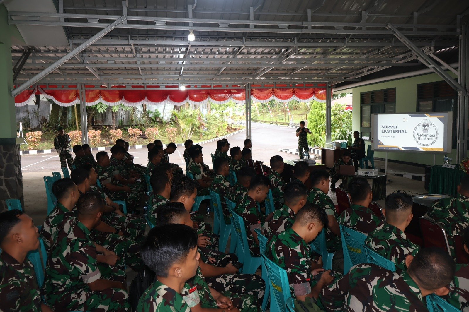 “Yang paling utama adalah komitmen dari pimpinan artinya yang paling utama dari pelaksanaan atau penyelenggaraan reformasi birokrasi itu sendiri adalah komitmen dari pimpinan untuk memberikan, menyampaikan atau menularkan visinya kepada seluruh prajuritnya itu dapat melaksanakan segala sesuatu sesuai dengan yang menjadi misi atau tujuan dari pemimpin itu sendiri itu bisa diikuti sesuai dengan koridornya,” pungkas Letkol Cba Firmansyah.