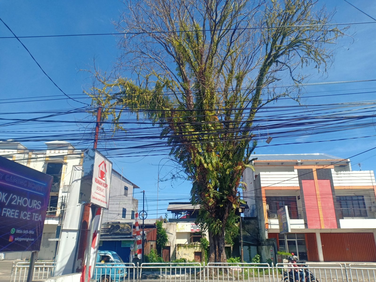 MANADO, MANADONEWS.CO.ID – Meski sudah banyak yang ditebang, masih ada pohon di jalan Samrat, Manado yang berdiri tegak namun sebetulnya rapuh.