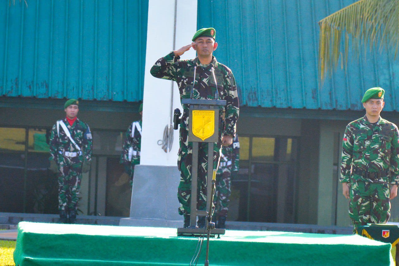 MANADO,MANADONEWS.CO.ID- Asisten Perencanaan Daerah Militer (Asrendam) XIII/Merdeka Kolonel Inf Samsul Huda bertindak sebagai Inspektur upacara pada upacara bendera mingguan yang digelar di lapangan Makodam XIII/Merdeka, Kota Manado, Senin (8/9/2025).