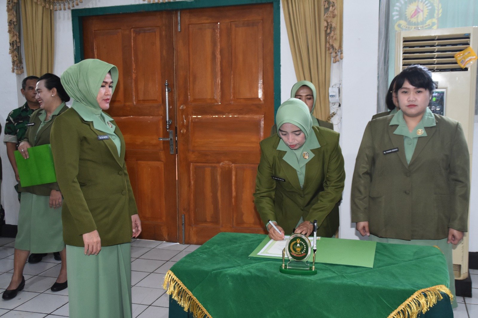 Pada kesempatan yang sama sekaligus turut dilaksanakan serah terima jabatan pengurus Persit KCK Koorcabrem 131 PD XIII/Merdeka yang dipimpin langsung Ketua Persit KCK Koorcabrem 131 PD XIII/Merdeka Ny Ella Martin.