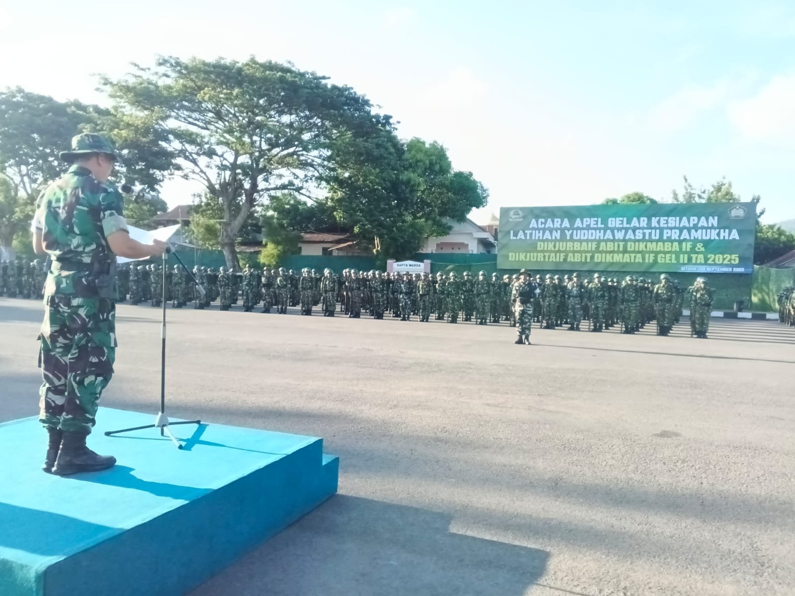 BITUNG,MANADONEWS.CO.ID- Wadanrindam XIII/Merdeka Kolonel Inf Mochammad Fuad Suparlin mewakili Danrindam XIII/Merdeka Brigjen TNI Wempie Ramandei memimpin Apel Gelar Kesiapan Latihan Yudha Wastu Pramuka Jaya (YWPJ) siswa Dikjurbaif Abit Dikmaba If dan siswa Dikjurtaif Abit Dikmata If Gel II Tahun 2025 bertempat di lapangan upacara Mako Secata Rindam XIII/Merdeka, Kota Bitung, Sulawesi Utara, Minggu (28/9/2025).