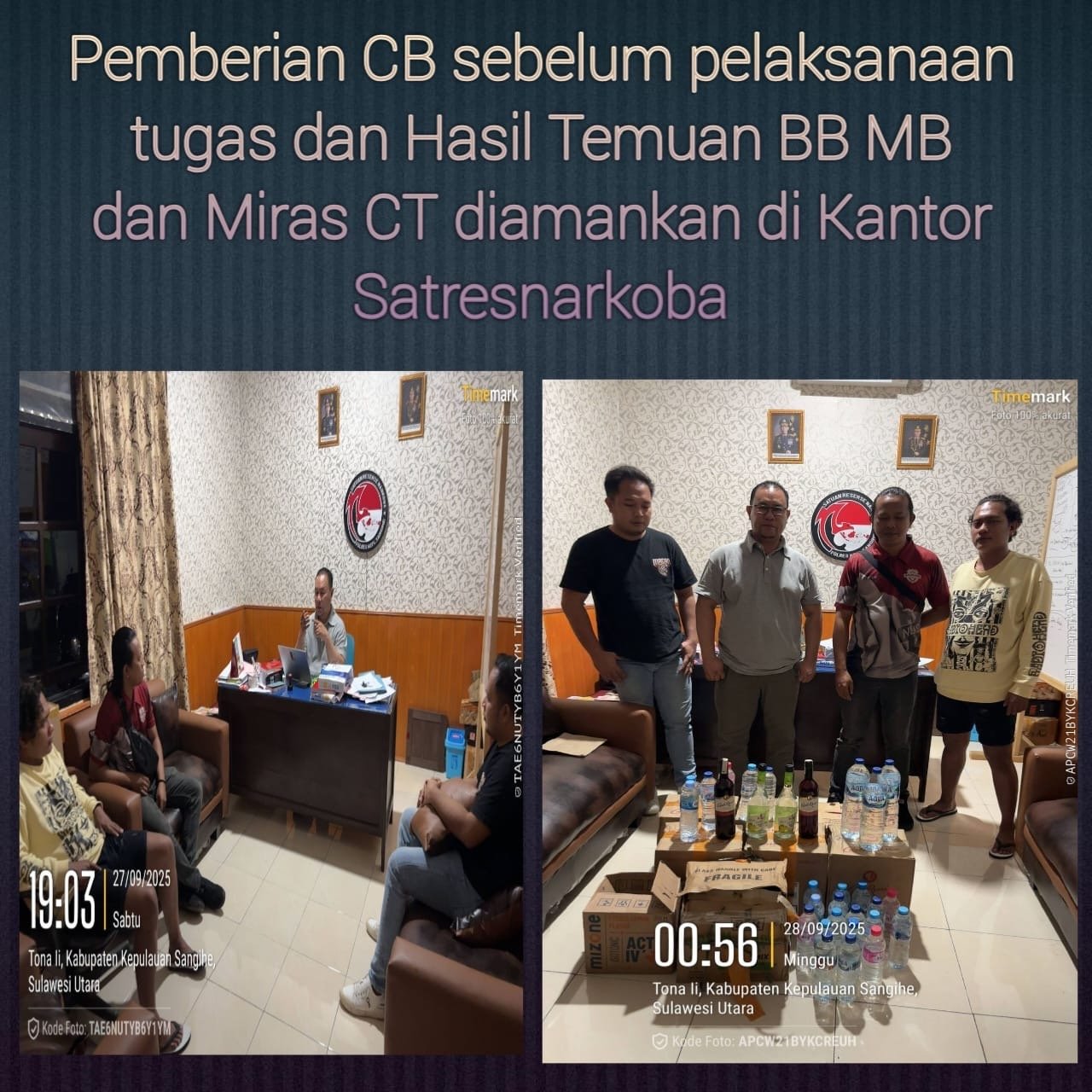 • Barang bukti: 1 dus Barjin ukuran 750 ml dan 5 dus Carlo Rossi ukuran 750 ml.