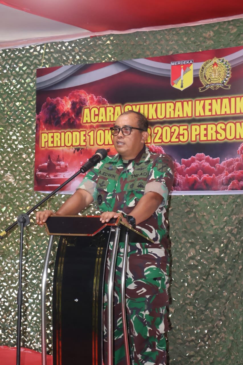 Pada kesempatan itu, Kapaldam XIII/Merdeka Kolonel Cpl Andi Edwin Mufiandi mengucapkan selamat kepada para personel Paldam XIII/Merdeka yang telah memperoleh kenaikan pangkat satu tingkat lebih tinggi dari pangkat semula.
