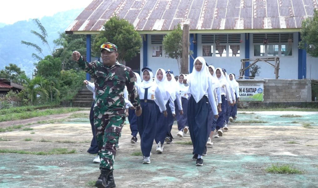 GORONTALO,MANADONEWS.CO.ID- Tak hanya berkonsentrasi pada pembangunan fisik saja, di tengah kesibukan program TNI Manunggal Membangun Desa (TMMD) ke-126 Kodim 1315/Kabupaten Gorontalo (KG), Satgas TMMD ke-126 menggelar kegiatan penyuluhan Peraturan Baris Berbaris (PBB) guna menanamkan nilai-nilai disiplin, mental kejuangan, dan rasa cinta tanah air sejak usia dini kepada di Sekolah Menengah Pertama Negeri (SMPN) 4 Satap Telaga Biru, Jalan Puncak Tonala, Kecamatan Telaga Biru, Kabupaten Gorontalo, Senin (13/10/2025).