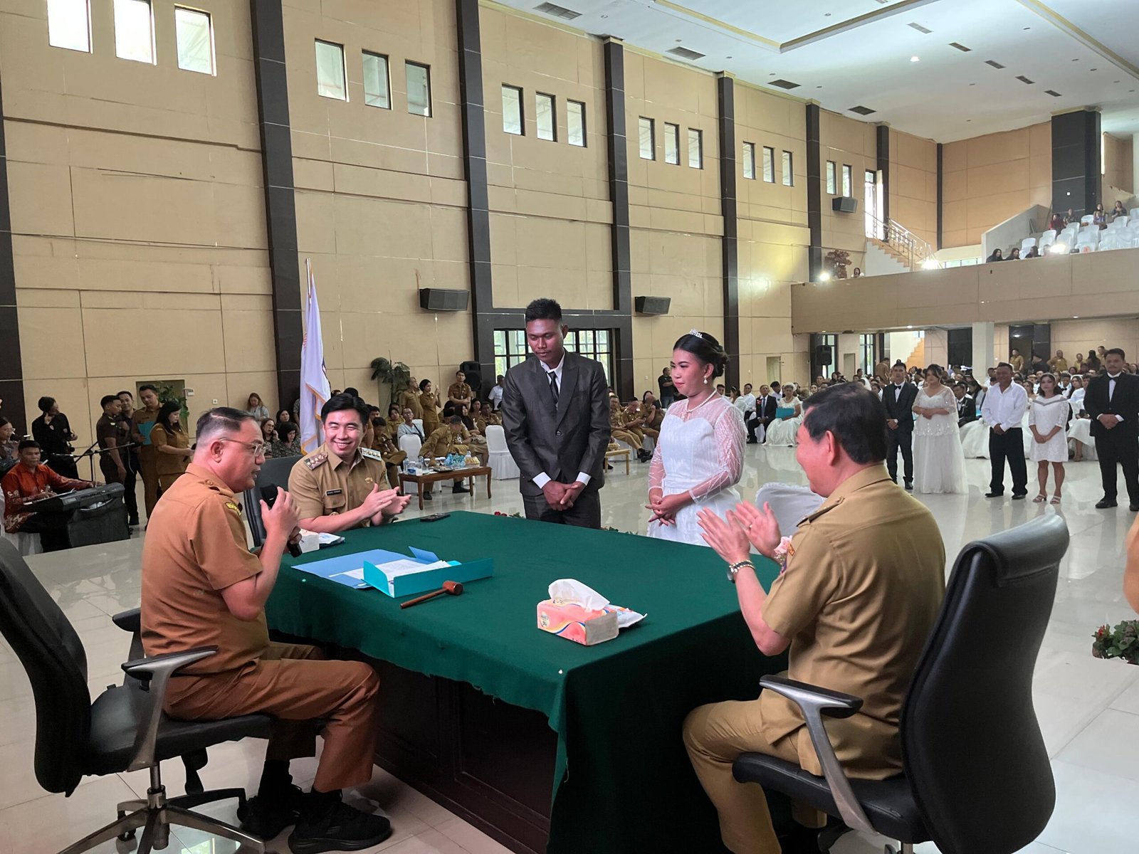Pada kesempatan itu, Kabupaten Kepulauan Sangihe turut mengikutsertakan enam pasang pengantin yang secara resmi dinikahkan dan dicatatkan sebagai pasangan suami istri.