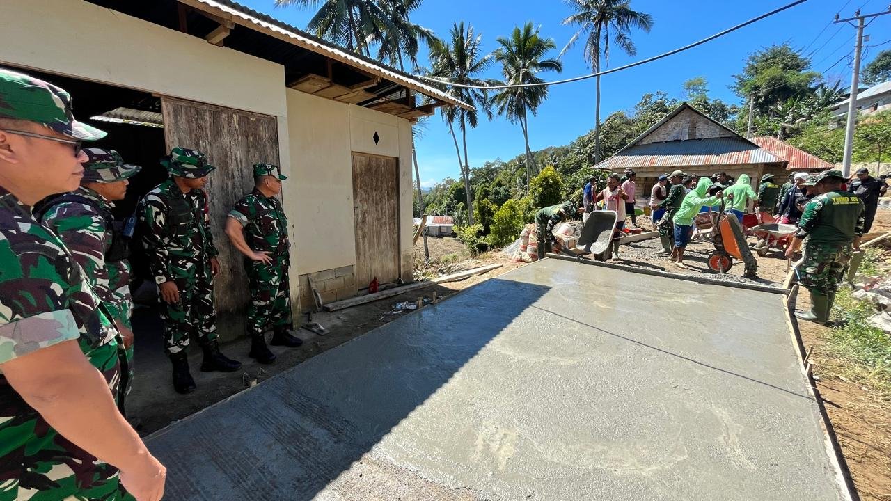 Danrem 133/Nani Wartabone Brigjen TNI Hardo Sihotang mengapresiasi semangat gotong royong yang tinggi antara prajurit TNI dan warga dalam mewujudkan percepatan pembangunan di desa.