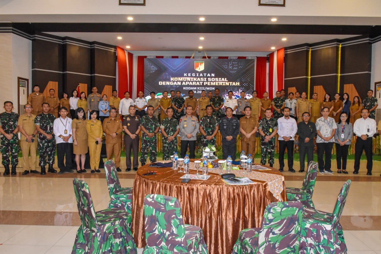 MANADO,MANADONEWS.CO.ID- Dalam rangka membangun karakter bangsa untuk ketahanan wilayah serta mempererat kerja sama, dan memperkuat jalinan silaturahmi antara TNI di wilayah Kodam XIII/Merdeka dengan pemerintah daerah, Kodam XIII/Merdeka menggelar Komunikasi Sosial (Komsos), Selasa (21/10/2025) di Grahadika Jaya Sakti Makodam XIII/Merdeka, Kota Manado, Sulawesi Utara.