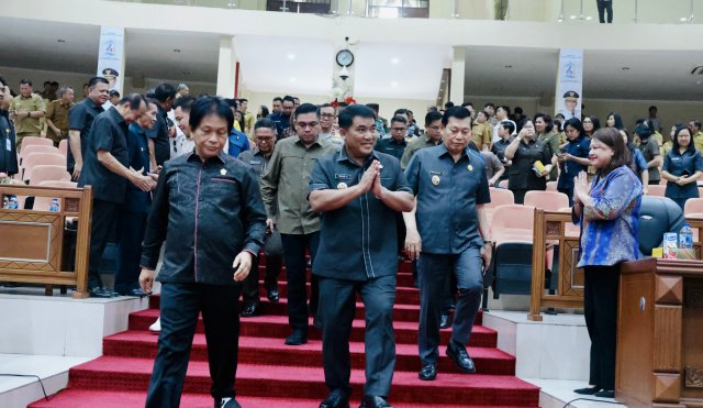 Rapat paripurna dipimpin Ketua DPRD Fransiscus Silangen, didampingi para wakil ketua, Michaela Paruntu, Royke Anter dan Stella Runtuwene, dihadiri Gubernur Yulius Selvanus dan Wakil Gubernur Victor Mailangkay.
