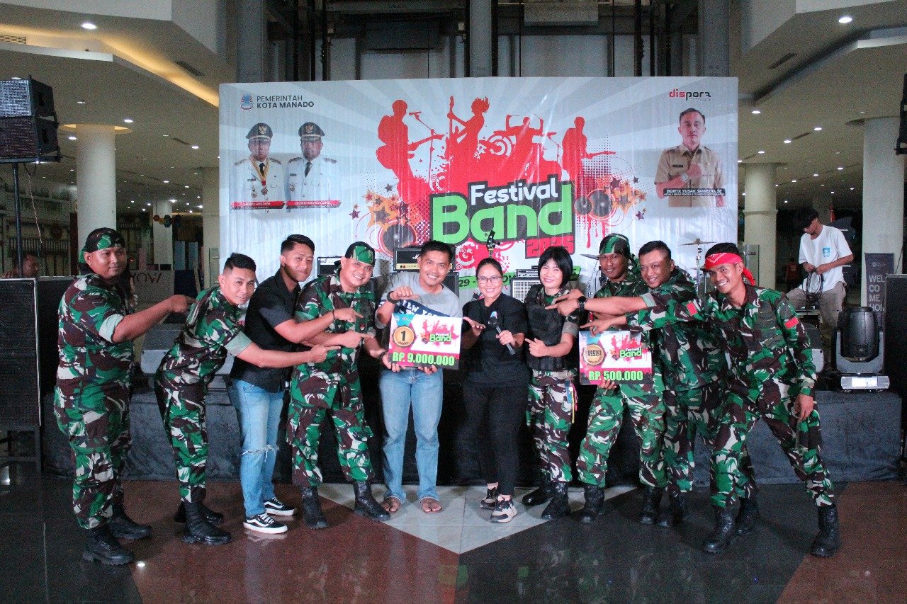 MANADO,MANADONEWS.CO.ID- Grup Band kebanggaan 46 Army Band Ajendam XIII/Merdeka kembali meraih juara 1 dan The Best Bass Player dalam festival band Dispora yang diselenggarakan di Star Squere Bahu Mall, Kota Manado, Sulawesi Utara, Minggu (30/11/2025).