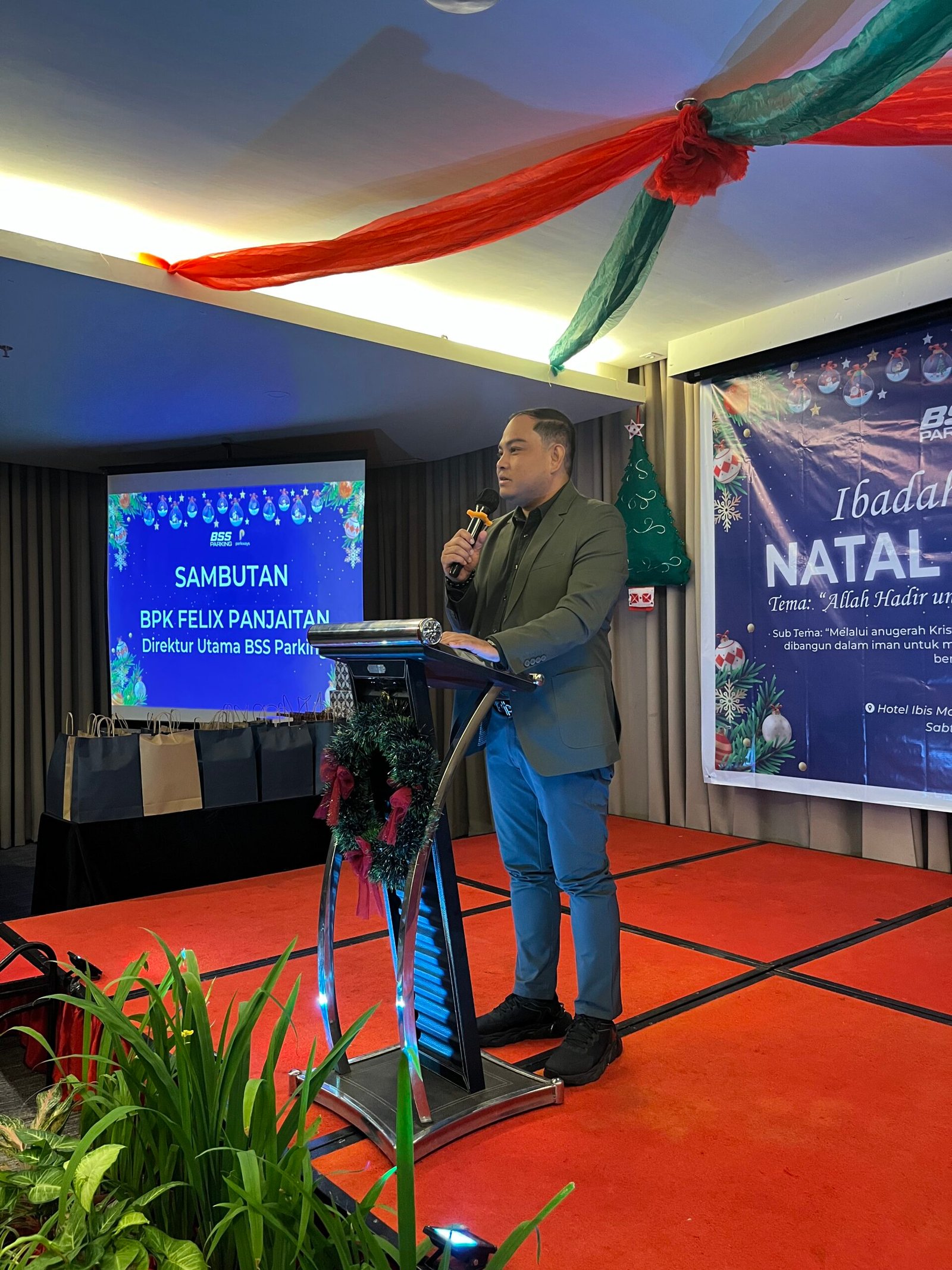 Dalam sambutannya, Direktur Utama BSS Parking Felix Panjaitan menyampaikan rasa syukur karena setiap tahun keluarga besar BSS dapat kembali berkumpul merayakan Natal bersama. Ia juga menyampaikan apresiasi kepada Pdt. Herby K.I Mokat, M.Th yang setia melayani ibadah Natal BSS Parking selama tiga tahun berturut-turut.