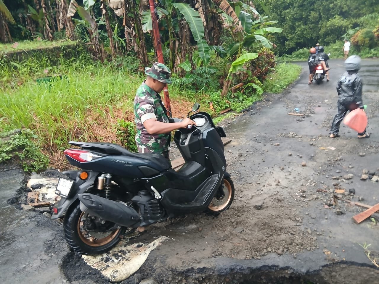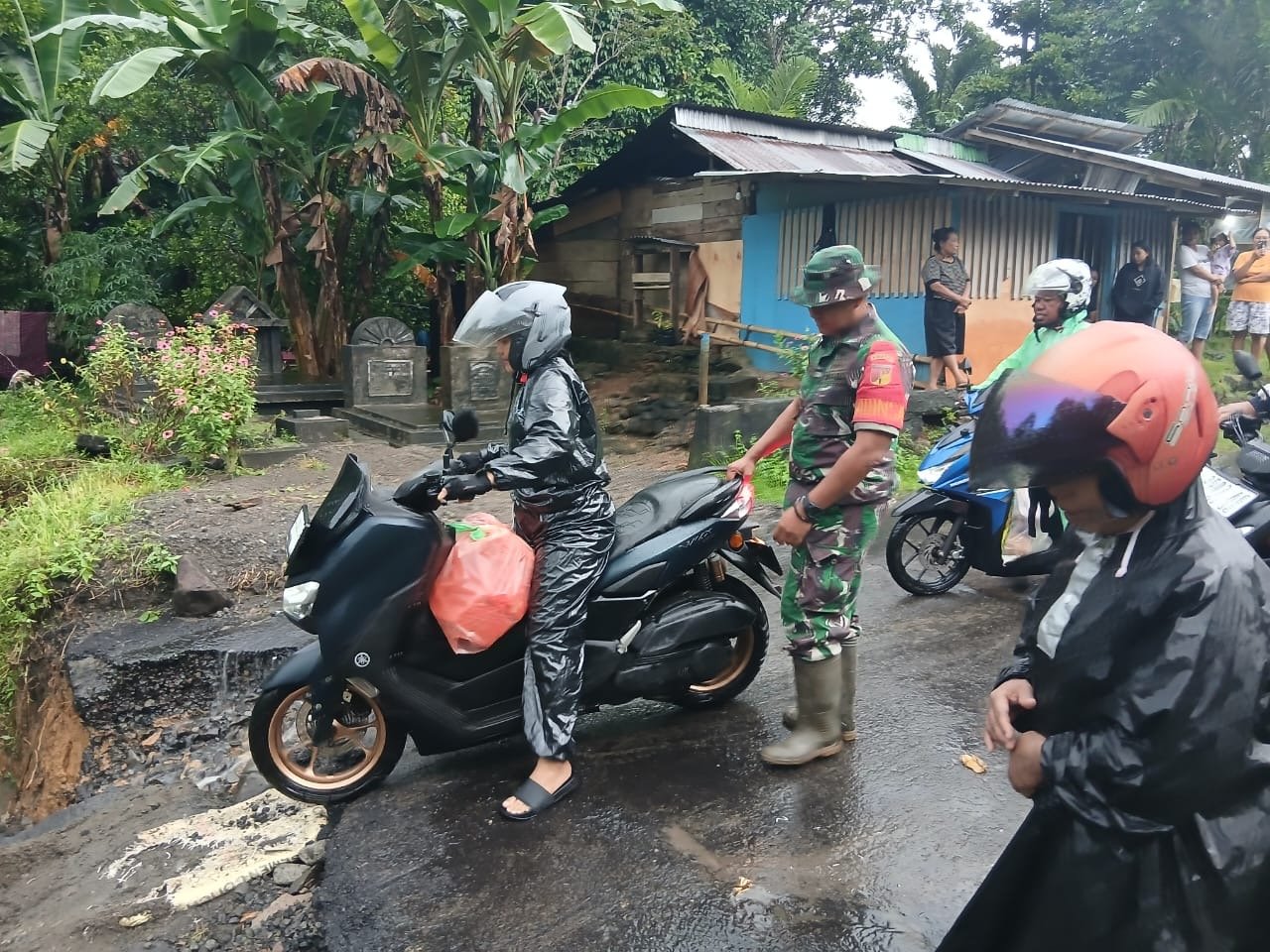 Di lapangan, Babinsa bersama aparat desa aktif memberikan imbauan kepada masyarakat agar tetap berhati-hati saat melintasi ruas jalan yang amblas, mengingat cuaca di wilayah Kepulauan Sangihe hingga saat ini masih didominasi hujan.