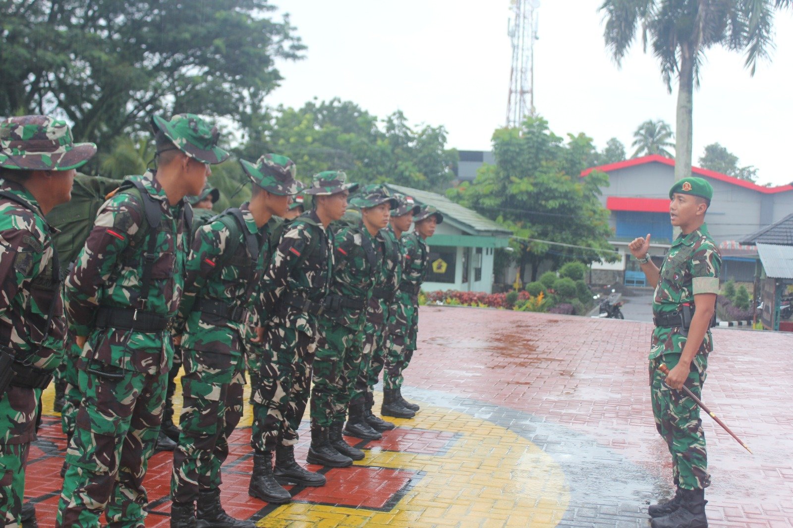 Kegiatan yang berlangsung dalam suasana khidmat meski hujan gerimis turun, seolah menjadi saksi kesiapsiagaan Prajurit yang tetap tegak dan bersemangat menjalankan tugas kemanusiaan. (Regina.TS)