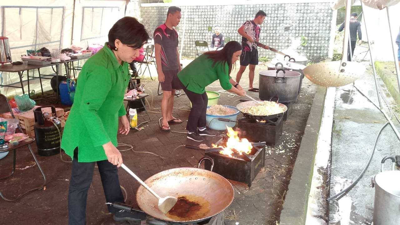 Pada Jumat (09/01/2026), Persit Kodim 1301/Sangihe terlihat membantu aktivitas dapur umum, mulai dari menyiapkan bahan makanan hingga memasak hidangan bagi para pengungsi. Kehadiran Persit di dapur umum ini menjadi bagian dari upaya memastikan ketersediaan makanan dan kebutuhan dasar pengungsi tetap terpenuhi.