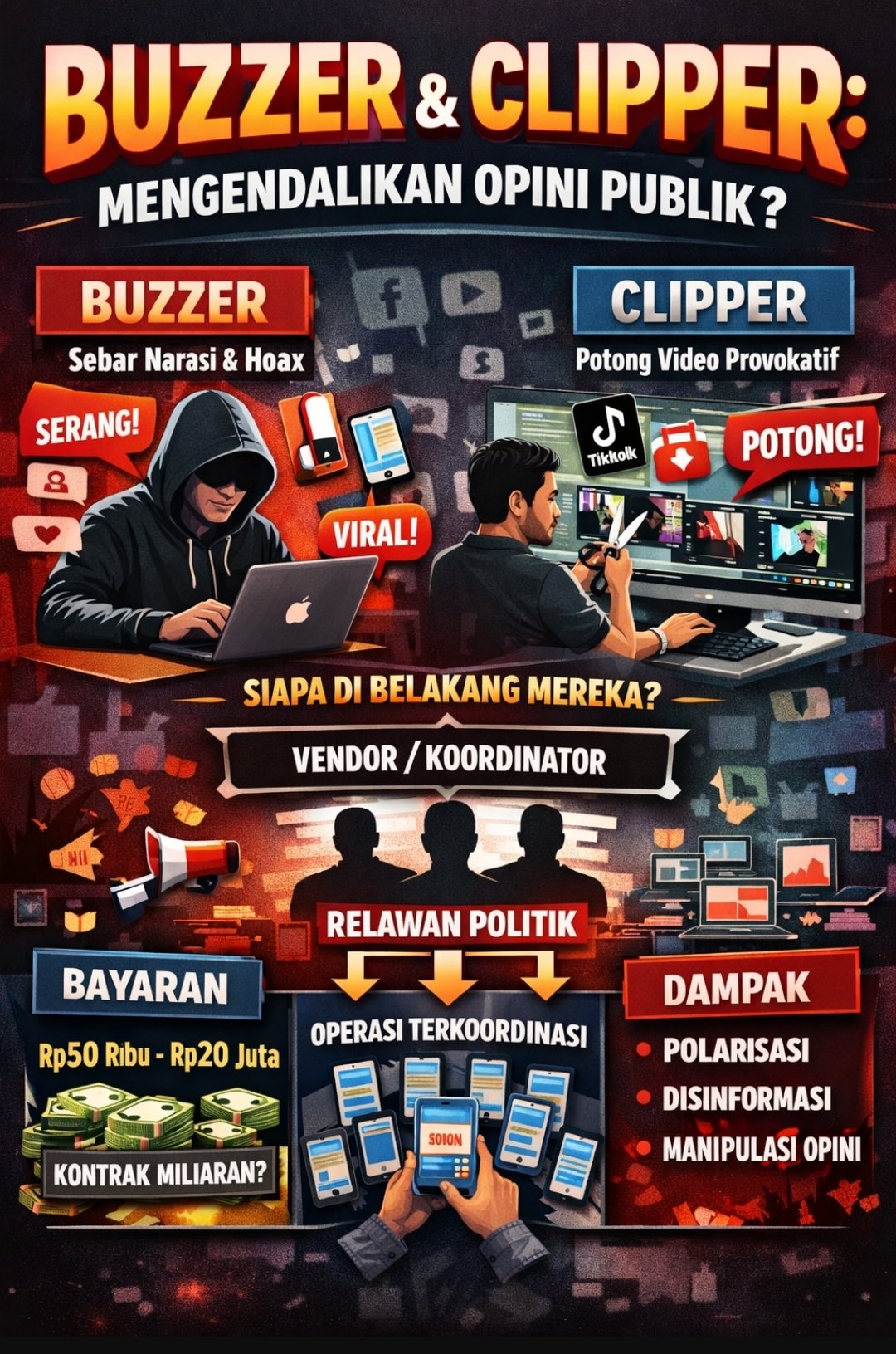 Dalam satu dekade terakhir, muncul dua aktor yang perannya semakin menentukan arah opini: buzzer dan clipper.